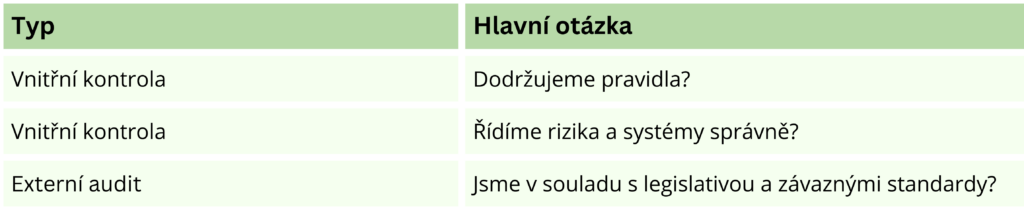 Interní audit, externí audit, vnitřní kontrola.