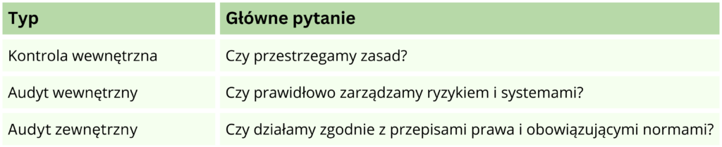 Audyt wewnętrzny, audyt zewnętrzny, kontrola wewnętrzna.
